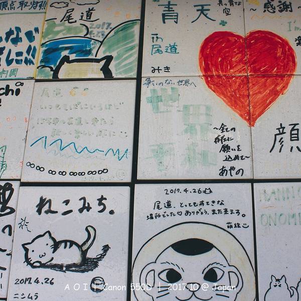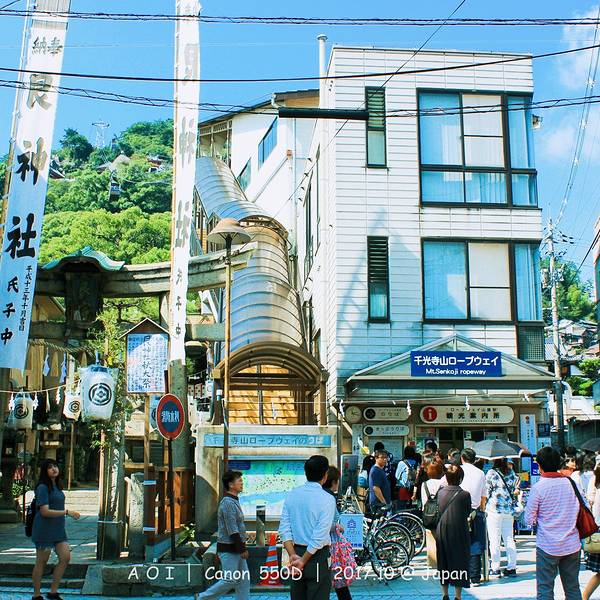 [ 千光寺山ロープウェイ ] 住所:広島県 尾道市 東土堂町 20−1 営業時間:9:00-17:15(15分おきに運行/定員30名) 料金:(片道)大人320円、小児160円 (往復)大人500円、小児250円我买了往返缆车票,排队坐缆车的人还挺多的,好在在日本排队大家都很有秩序不会插队,而且缆车几分钟一趟也没等多久就上去了,不过特别讨厌排队的人比如大葵,我就不建议她来了哈哈~据说这缆车昭和32年(1957年)就开始运营了,3分钟就能到达山顶。Emm…也是个秀恩爱撒狗粮闪瞎眼的地方…单身汪出没请注意,我就先走了 ε=ε=ε=ε=ε=ε=┌(; ̄◇ ̄)┘尾道市位于冈山市与广岛市中间处,也因此成为两都会区的“缓冲地带”。在临濑户内海处为尾道水道,因此自古就是海运的物流集散地,明治时代山阳铁道开通后,更成为铁路运输与海运的转运处,也因此成为了广岛县东部的最大城市。1999年5月西濑户自动车道通车后,更可直接连结四国,加上兴建中的中国横断自动车道,未来将会成为「濑户内地区的十字路口」。寺庙、神社、公园,感兴趣的可以到处逛逛。太阳晒肚子饿还有怕被虐,这些原因让我足够理直气壮地选择拍几张照片就下山,其实坐缆车时候拍的就挺美。下来之后准备去附近猫の细路转转,经过一片画画的瓷砖墙。细窄的破路,爬上去意外挺累。尾道的寺庙可以说是非常多了,城市里的路很多都是以寺庙命名的。因为没有战火的破坏,保存了完好的古迹,也吸引了很多日本国内的游客前往。红白,真是配一脸啊喂 ヽ(•̀ω•́ )ゝ