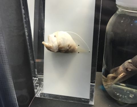 在深海水族馆可以看到传说中的食人蟹,站起来个头比一般人都大。馆内还科普了与深海有关的知识:深到1000米的海底,塑料会变成粉末;如何捕捞深海动物等。