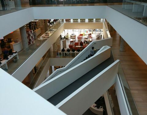 哈利法克斯图书馆免费的,非常漂亮,设计非常特别,看到很多游人来拍照。很多电脑提供查询