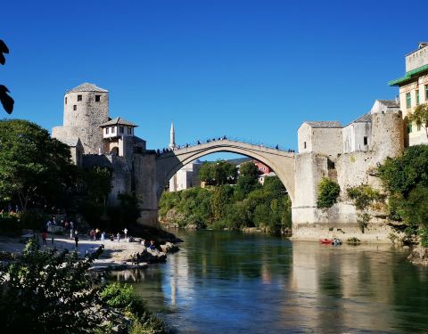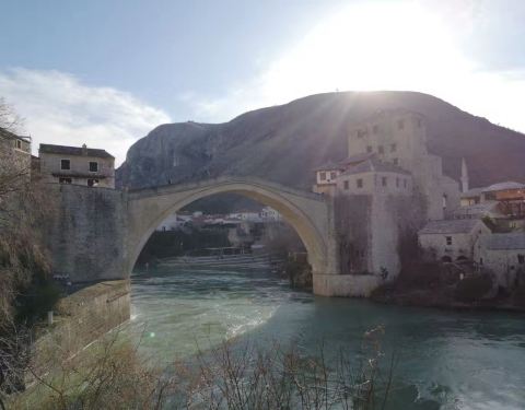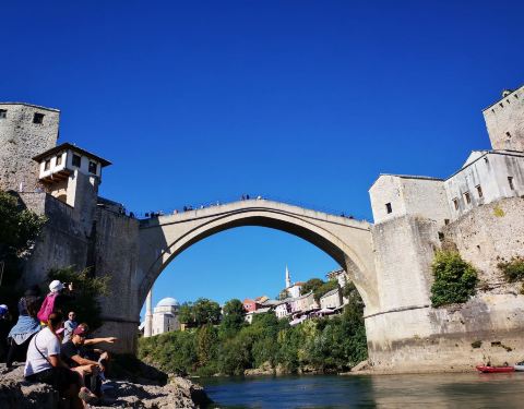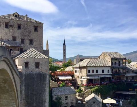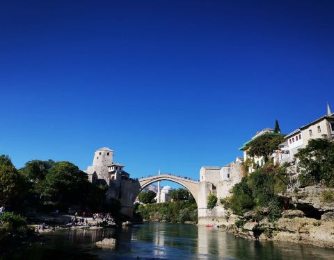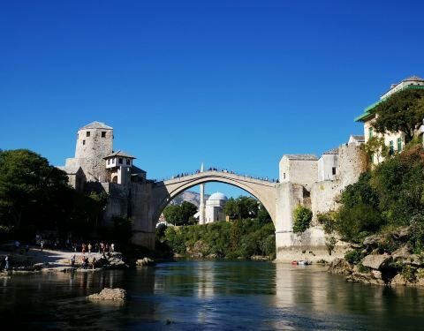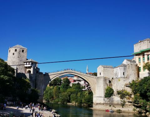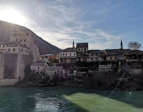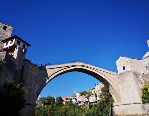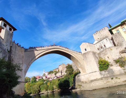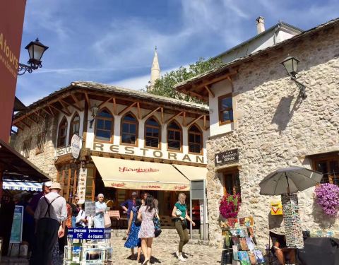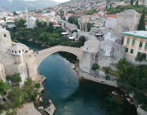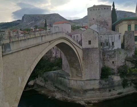 莫斯塔尔古城的标志性建筑,曾在战争中被摧毁,后又重新建造,要想看到跳桥表演就要在人多的中午下午...
