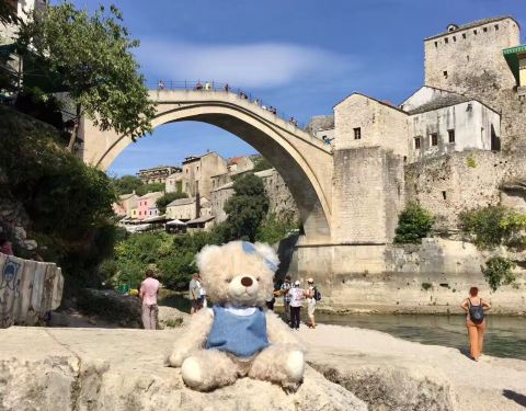 莫斯塔尔古城的标志性建筑,曾在战争中被摧毁,后又重新建造,要想看到跳桥表演就要在人多的中午下午的时候去,会有人在桥上和桥下向游客索要小费,我给个2马克,要想人少的时候拍照就要早点起一早去拍。