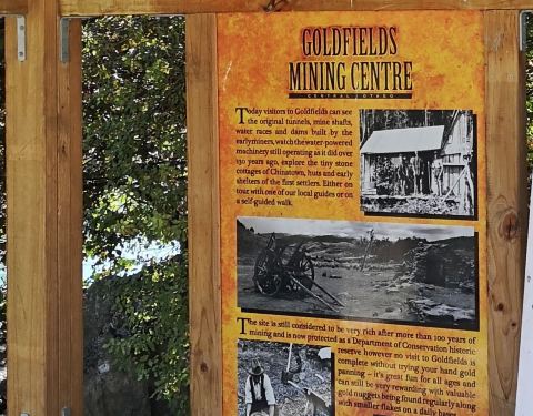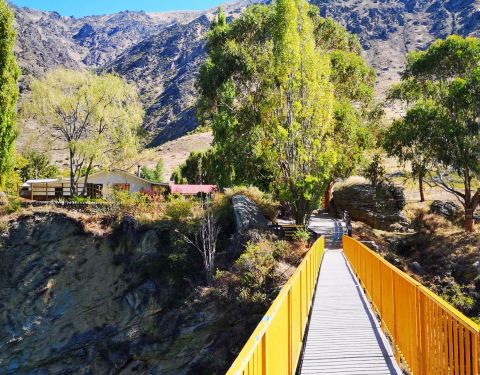 旧金矿位于去水果小镇的公路边上,有一座铁桥横跨卡瓦劳河,在桥上就能看见以前金矿所使用的设备和华工居住的工棚,现在金矿已经废弃,成为了一处遗迹展馆,顺路经过的可以进去看看。