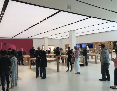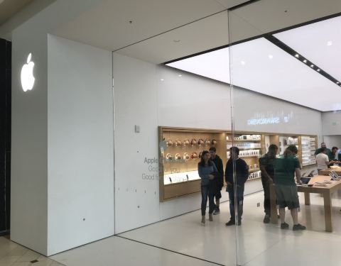 很大商场聚集很多大百货商店和名牌店,包括萍果专卖店也大商场二楼展现!
