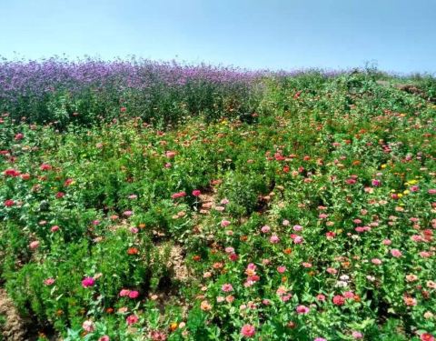 最开始搞起来的时候,花很好。后面就荒废了,插的风车和办起了灯光秀。去年重新种了花,今年盛开了哇。因为最开始搞的时候没去,这次今天刚去看,很好看,就是太阳有点晒。新鲜出炉火辣辣的图片哦