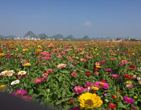 神仙湖花海位于贺州市富川瑶族自治县的福利镇,距离贺州市区70多公里,我们是国庆假期去那儿玩的,花海的花开得很漂亮,也比较多,适合游玩。