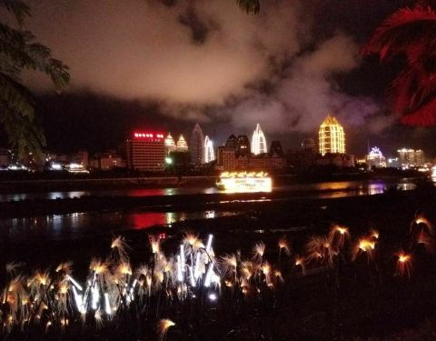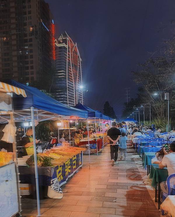 夜市对面的夜景,能看到告庄。价格比星光夜市便宜,据说收摊前会更便宜。烧烤居多,游客基本都是附近酒店的江边夜市就是河旁边的步道构成的一条步行夜市。白天不摆摊基本没人,晚上连旁边的餐厅都很热闹。夜市非常长,我们逛了3分之2的路程,就为了买划算的衣服送人,因为特产于我们而言不是很特别。价格比星光夜市便宜...江边夜市就是河旁边的步道构成的一条步行夜市。白天不摆摊基本没人,晚上连旁边的餐厅都很热闹。夜市非常长,我们逛了3分之2的路程,就为了买划算的衣服送人,因为特产于我们而言不是很特别。价格比星光夜市便宜,据说收摊前会更便宜。夜市对面的夜景,能看到告庄烧烤居多,游客基本都是附近酒店的。菠萝很酸但解了糯米饭的甜腻为了好看就买来尝尝,30块的冰沙边吃边漏,不配鸡蛋花确实不好看 展开