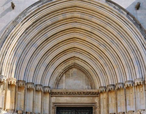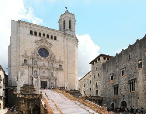 赫罗纳大教堂位于老城区中心地带,始建于11世纪,起初为罗马式风格,之后于13世纪改为哥特式风格。大教堂于18世纪竣工,是世界知名的哥特式大教堂之一。 大教堂赫然耸立在近百级台阶之上,以中殿而闻名,教堂的回廊为新罗马式,正立面和正殿为加泰罗尼亚巴洛克式,侧面钟塔建于18世纪,是世界上非常宽的哥特式中殿,也是加泰罗尼亚哥特式建筑理想空间的象征。教堂珍宝馆内保存着欧洲完整的于11至12世纪间绣成的织锦画《创世纪》,非常壮观。 大教堂还是《权力的游戏》君临城的大教堂的取景地。