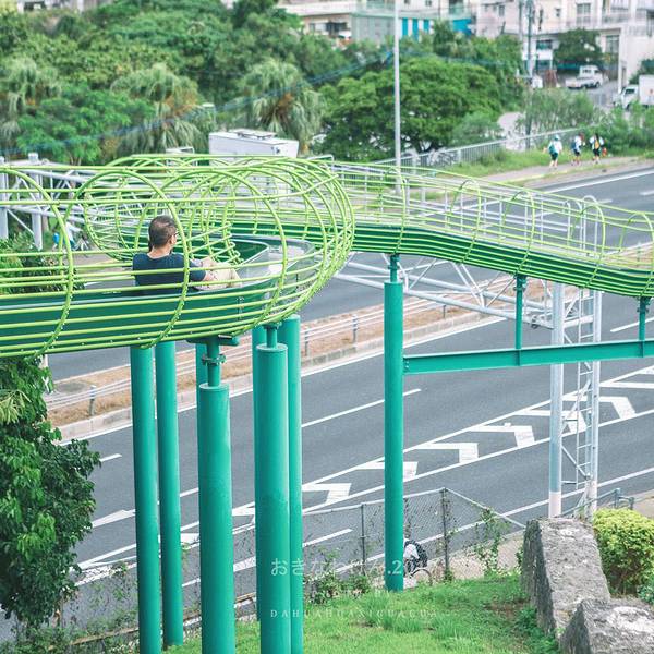 第一站是浦添大公园,这个真是要么上午来,要么傍晚去,反正就是不那么晒的时候再去。否则大滑梯上的滚轮要是被晒得滚烫,那滋味。。。大滑梯看上去真是壮观,像个巨大的绿龙,...这一天是运气最好的一天,全天晴。