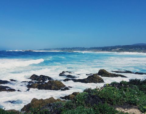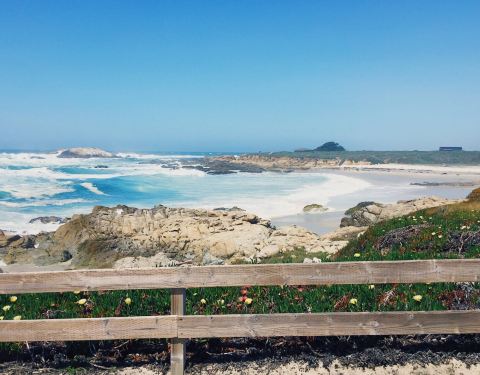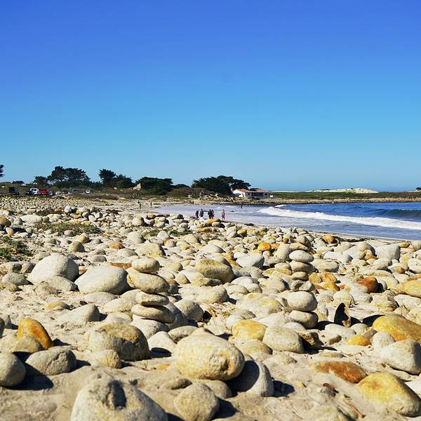 十七英里里面很热门的一个景点了。 来到这个景区,都会停车来这个海边玩玩儿。 也是白沙滩,沙质也很好,天气蓝海蓝,特别美,是那种很深沉的蓝,蓝得很有质感哦。 像是一幅油彩画,不走小清新路线,但一定是昂贵的巨作。 海滩边有个木桌子,还有长椅,坐在那儿摆盘几张,很好看,主要是有大海和蓝天做背景,真的是无敌的美景了。 我们还偶遇了一个小孩子搭的石头阵,上面还放了一个粉色的大嘴玩偶,很有童趣。 这儿是富人的休闲度假区,进入需要付费,但是我觉得价格不算贵的,很值得游览。 太阳很大,但是十月的天气有些微凉,所以阳光下会很暖和,倒不会觉得不适。 海风很大,海浪也很汹涌,海水有些凉,不适合下海游泳,脱了鞋踩一踩水就够了。 每一年都给自己订几个旅行计划,让时间过得更有意义,生活多一些期待。