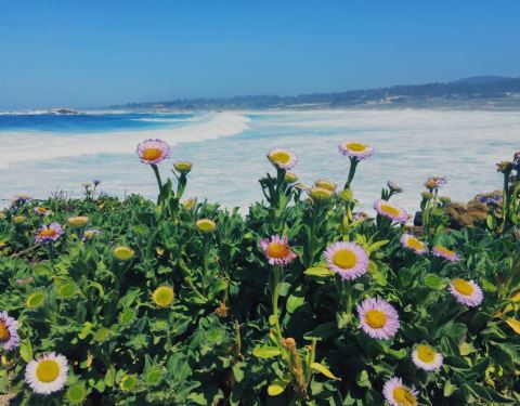 卵石滩是加州17哩风景线上的一个很漂亮的小镇,这里的海滩有各种造型的大石头,也有生长茂盛的植物...
