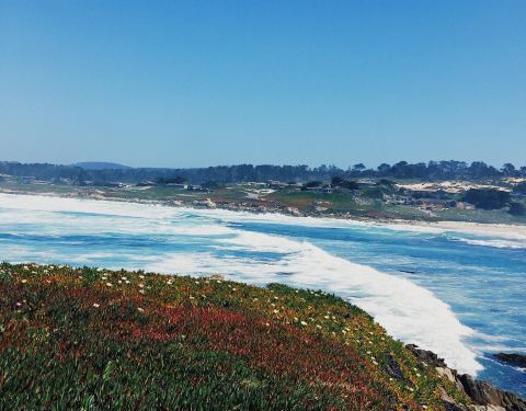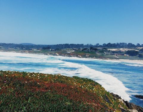 卵石滩是加州17哩风景线上的一个很漂亮的小镇,这里的海滩有各种造型的大石头,也有生长茂盛的植物,看起来很有特色,很美的感觉。
