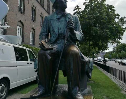 哥本哈根市政厅位于哥本哈根市中心的市政厅广场,这是1905年建成的第6代市政厅,拥有高105.6米尖塔,红砖结构建筑。哥本哈根市政厅前的广场上有精美的喷泉、纪念柱,还有一座闻名的安徒生雕像,引来游人的驻足。 一楼大厅向公众开放参观。过了玄关,走上台阶,迎面而来的是间宽广明亮的大厅,这里是官方接待或举办婚礼的场所,也因此装饰得很华美。 哥本哈根市政厅里还有一间小小的天文钟博物馆,称为“延斯‧奥尔森世界时钟博物馆(Jens Olsens Verdensur)”。这是一只可以显示十二种星体运行的天文钟,包括当地时间、日食和月食的日期,以及星体的的位置。
