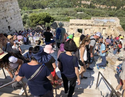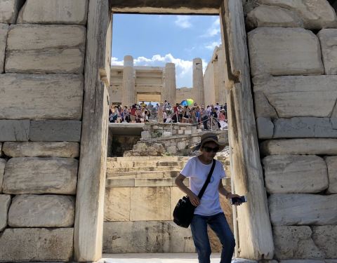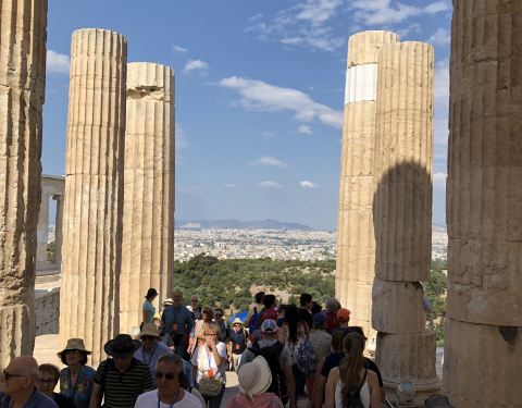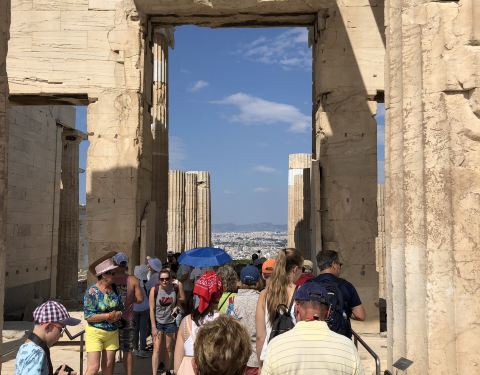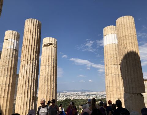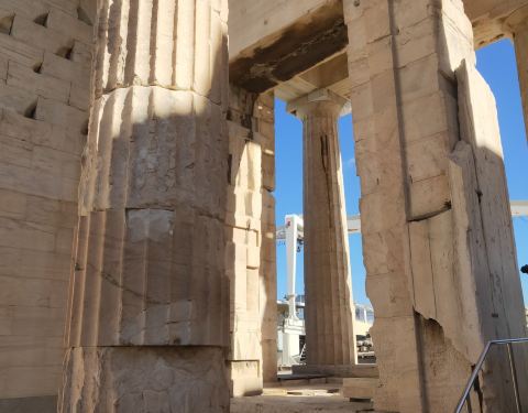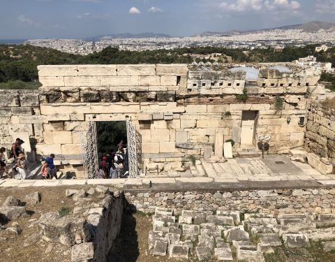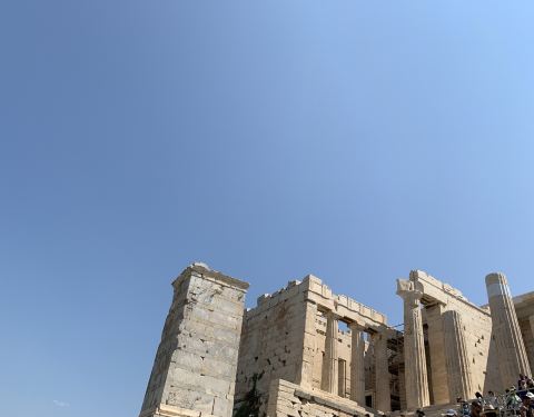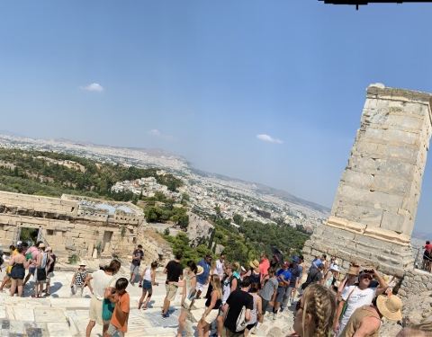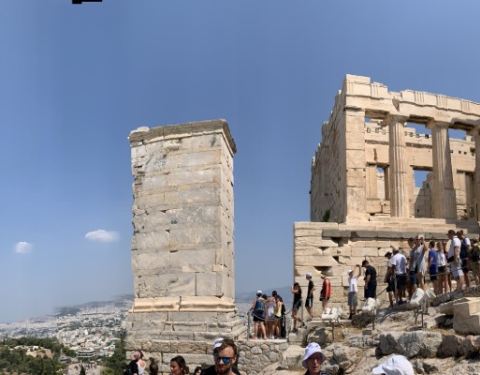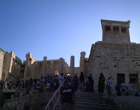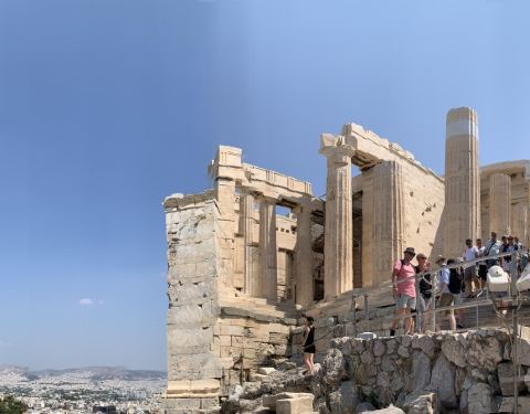 ...速度也比较慢 山门后面就是卫城上面的神庙区 作为必经之路 这里很好的体现了狭窄难通过易守的特点卫城的山门感觉也是有一点残骸的感觉 很多的建筑轮廓已经被破坏 这里虽然通道不宽 但是视野上直接面对雅典城区也吸引人来这里取景拍照 因此通行速度也比较慢 山门后面就是卫城上面的神庙区 作为必经之路 这里很好...卫城的山门感觉也是有一点残骸的感觉 很多的建筑轮廓已经被破坏 这里虽然通道不宽 但是视野上直接面对雅典城区也吸引人来这里取景拍照 因此通行速度也比较慢 山门后面就是卫城上面的神庙区 作为必经之路 这里很好的体现了狭窄难通过易守的特点 展开