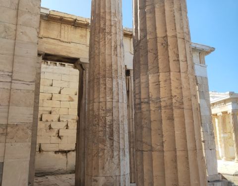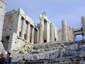 ...的一个入口,从现在剩下的外观框架来看,也是非常宏伟的,这里的石柱保存的比较的完好,没有太多残缺这个建筑位于卫城西边的山坡之上,是雅典卫城的一个入口,从现在剩下的外观框架来看,也是非常宏伟的,这里的石柱保存的比较的完好,没有太多残缺。