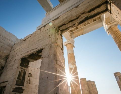 雅典卫城的入口,高耸的立克式廊柱让人印象深刻。