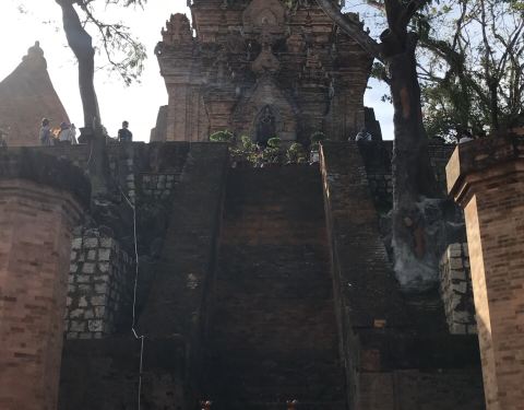 占婆塔建筑风格独特,在那里拍照的话比较漂亮,进入占婆塔需要穿过膝的裤子和裙子,不能戴帽子,如果穿短裙可以在旁边拿一件罩衣穿上,个人感觉进去里面很神秘,不想我们这里的寺庙,还是很值得一去,感受异域风...