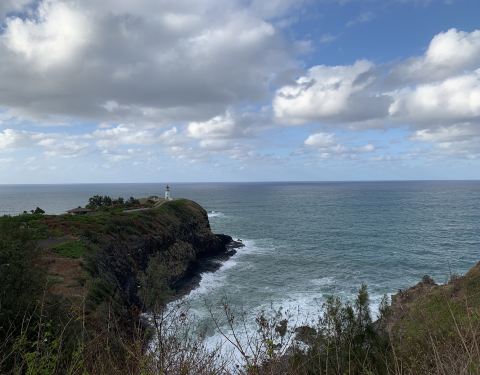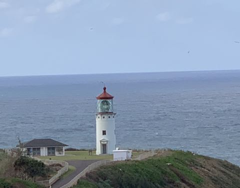 基拉韦厄灯塔矗立在考爱岛东北角约200英尺高的悬崖上,为来往于美国西海岸和亚洲之间的船只指明方向,是考爱岛上有名的景点之一。基拉韦厄灯塔高约16米,中部是一个拥有扶手的不锈钢圆弧结构,供游客登塔观赏美景。灯塔位于蓝天白云之下,面向浩瀚的大海,同周围的自然环境互相结合,像是蔚蓝之中一点白,美不胜收。登上塔顶,可饱览可爱岛的秀丽风光,这里还是拍摄崎岖的北海岸线和深蓝色的太平洋的地点。