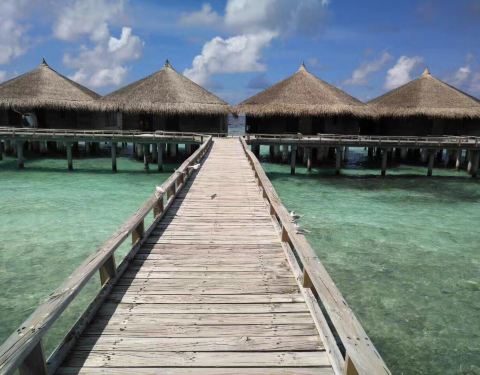 在马尔代夫,最具特色的酒店当属水上屋了,整个房子由木头制成,坐落在海平面上。很清新的ins风~沿着水上的小道走出去就是长长的白沙滩 简直就是世外桃源啊