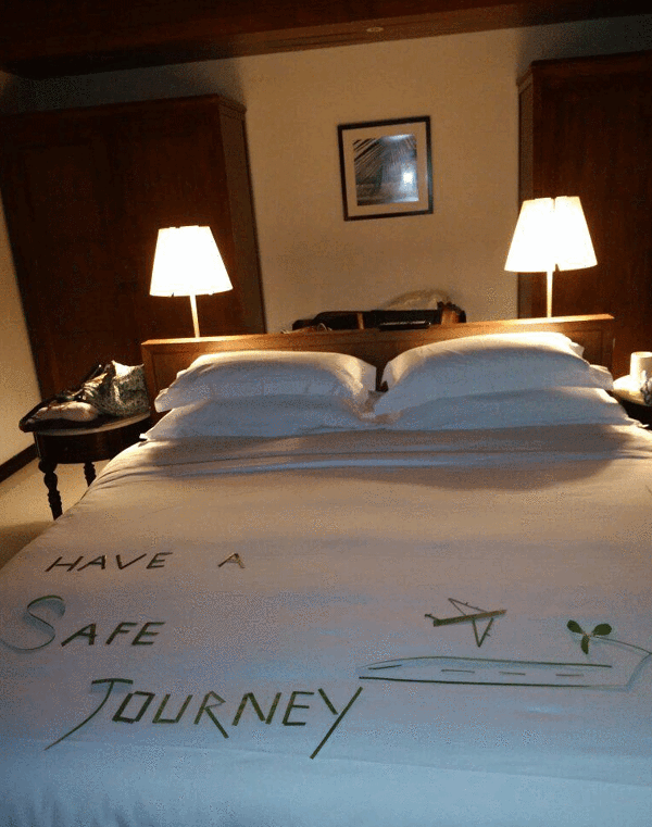 瑞喜敦的其中一个特色就是拥有马尔代夫第一家娇韵诗水疗中心,来头很大!所以小爱也去考察了一番。spa入口Spa by Clarins位于小岛东南边的栈桥尽头,全是水上屋,包括6间独立的理疗亭和1间美发沙龙。单人60分钟护理价格在100-160美元之间,90分钟要160-200美元。其实高星岛的Spa中心都挺美,各种亭台楼阁,瑞僖敦也不差,大家即便不按摩也可以蹭每天免费的日出日落瑜伽课上来看看。由于是考察,小爱的行程和游客稍有不同,基本上在一个岛停留两天,把该看的看完就要马不停蹄赶往下一个岛。在入住的最后一晚我收到了1封退房通知,上面有退房时间和快艇安排。瑞僖敦,以后有缘再见!