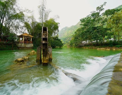 小都百村位于南宁市马山县古零镇乔老村,距离南宁市区120km,走高速自驾需要2个多小时。一般不会专门去小都百,都会连上周边的灵阳寺和金伦洞等景区一起游玩,正好是南宁周边一日游的样子。而小都百一般是作为午饭的地方,这里农家乐众多,除了午饭外,住宿也十分适合。村子里都是清一色规划好的灰白色小楼,家家的房子都是一个款式,标准的农业休闲旅游示范村。又因为当地人多为壮族和瑶族,所以村子里也充满着壮、瑶民族特色文化。适合夏季的周末带上老人还在来避暑。除了吃饭和住宿外,这里还有游船和家庭自行车休闲游,租上一辆四人自行车,沿着村里的小路一直骑行,沿路的上水风光无限,太适合节奏太快的城里人了。夏季的时候乘坐游船也是一种避暑的好选择。水道宽阔,没有遇到大雨的话,水还是很清澈的。另外,小都百还有“水车之乡”的称号,水道里,大大小小水车很多,虽说是比较新的旅游产物,但是也别有一番风味。来的季节对了,这里还有果蔬采摘,和窑鸡窑红薯等活动。可谓是集果疏种植、休闲观光、农家旅游为一体的现代农业生产基地。美食可以在村里吃,都是很特色的土鸡和绿色蔬菜,吃好了还可以买些打包会城。要是两天一夜的行程,建议可以去大化七百弄看看,是个好地方,但是特别考验司机的车技,新手驾驶需谨慎。