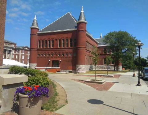 SyracuseUniversity有一个好听的中文译名“雪城大学”,是因为这个城市冬季极其大的降雪,而且冬季持续时间长,可从11月到次年的4月。个人觉得中文译名好听,英文原名的发音也很好听来着。大学是开放式的,根本没有围墙的影子。其中的近代建筑真的很赞,可惜只能外面看看,进不去里面感受一下。