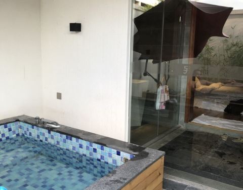 每栋别墅都有一个私密性非常好的温泉池,用感应手牌去开温泉水阀,温泉池便会慢慢注水,这些温泉水资...度假村有个儿童亲水游乐场,小朋友一直惦记着,好不容易等到太阳下山,没那么晒的时候,才带他出来玩。小朋友和大人不一样,喜欢各种各样的游乐设施。而我们只需要一池养生的温泉水。而泡温泉也确实对我的睡眠有...度假村有个儿童亲水游乐场,小朋友一直惦记着,好不容易等到太阳下山,没那么晒的时候,才带他出来玩。小朋友和大人不一样,喜欢各种各样的游乐设施。而我们只需要一池养生的温泉水。而泡温泉也确实对我的睡眠有很大帮助。除了大小不一的温泉池,度假村内还有个很大的游泳池,还非常贴心地分成了儿童区和深水区,无论大人小孩子都能玩得尽兴。在泳池边的躺椅上,随着太阳渐渐落下山的那一边,吹着黄昏的凉风,也是十分惬意的。当然最惬意的还是晚上在别墅后院的私家温泉池里泡汤了。每栋别墅都有一个私密性非常好的温泉池,用感应手牌去开温泉水阀,温泉池便会慢慢注水,这些温泉水资源都是非常珍贵的,所以我们也不要随便浪费,够用就会关掉。此时此刻,一个温馨的夜,最不能缺少的便是这个供一家人享受的温泉池了。 展开