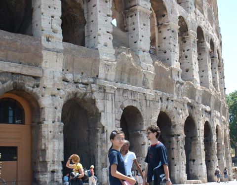罗马。几乎到处是古建筑,到处是古迹,废墟与现代建筑互相依存,互相补充,相得益彰,是相辅相成。 在古罗马的建筑傍边,兜售各种纪念品的货摊叫卖着,宾馆的窗户可以鸟瞰远处的宫殿,旅游汽车上,导游不失时机地介绍着古罗马的故事,公路上,上下班的车辆川流不息,这是一座从来没有疲倦的城市,从古罗马到现在。