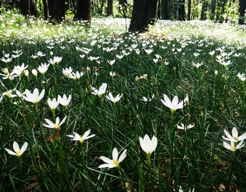 这边主要是植物景观,早晨去点点阳光透过树木洒在林荫道上~斑驳交错。园内面积挺大,空气清新,三两成群的老年人在演奏吊嗓和交谈,很是惬意。植物主要有兰花、杜娟、杉类等,九十月份正值花期,每一片花海都有不同的感觉。免费开放的,推荐给来腾冲的朋友,顺带去看看吧!