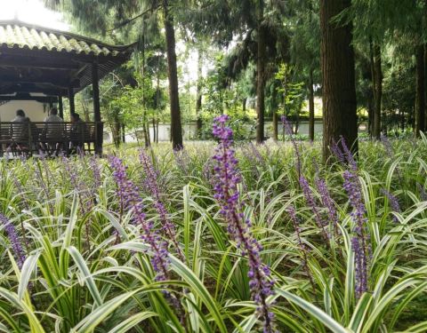 这边主要是植物景观,早晨去点点阳光透过树木洒在林荫道上~斑驳交错。园内面积挺大,空气清新,三两成群的老年人在演奏吊嗓和交谈,很是惬意。植物主要有兰花、杜娟、杉类等,九十月份正值花期,每一片花海都有不...