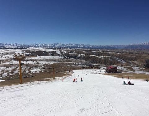 祁连山滑雪场不大,离康乐草原不远,可以一起玩。日落的景色很美!去时有一段路况不太好,开车不太好开。没有滑过雪的,可以先试玩一下。