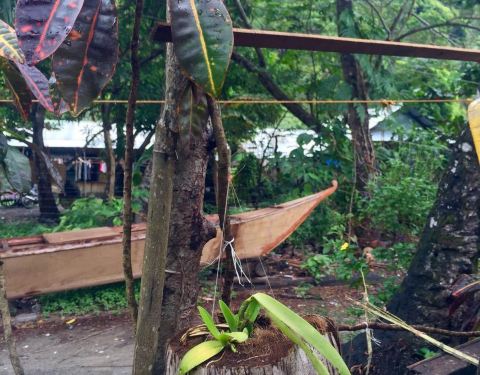 爱妮岛汽车站对面集贸市场后的一段海滩,因为天气关系出不了海,就在这里消磨了一天。其实这段海滩也是一个贫民窟,海边都是用竹子、塑料布等搭起来的简易房屋,住着的人估计都是渔民吧,或者是靠出租螃蟹船或舢舨给游客为生的当地人吧。生活条件看似很艰苦,但这里的孩子们还是自有自的快乐生活。很感叹啊。