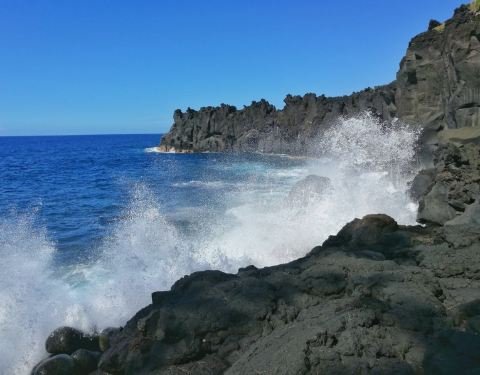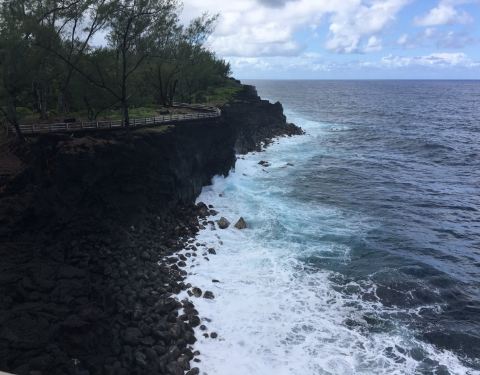 横亘在圣菲利普(Saint-Philippe)的这片黑色峭壁,称其为危险角是因为这里完全就是一片吞噬浪花的钳口,宛如世界的尽头。波涛在玄武岩岩柱群上绽放出千万朵闪光的浪花,远观蔚为壮观,宛若妙不可言的海上焰火。与西部的阳光海岸不同,由于火山岩浆从这里喷涌入海,这里的大陆架极深,据说往大海里走不了几步,就已经深不见底。火山石常年被汹涌的印度洋海水冲刷,已经完全变成了卵石的模样。