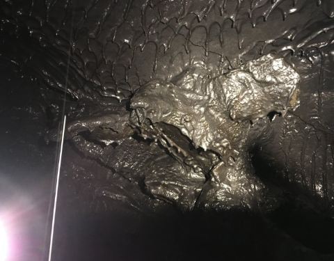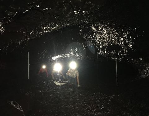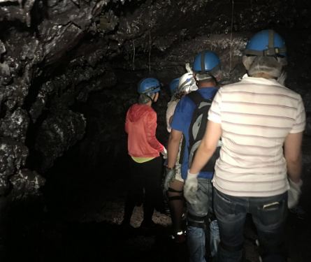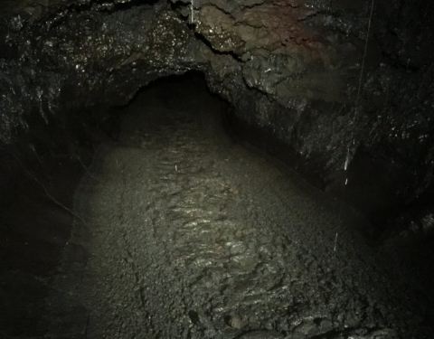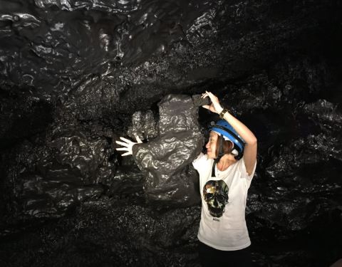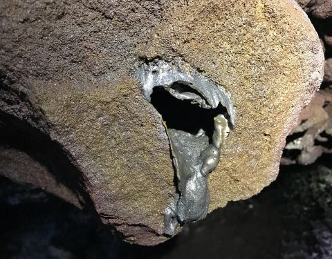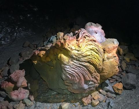 火山喷发后形成的熔岩隧道,可以看到熔岩内部的包裹的树木、熔岩形成的钟乳石等等。