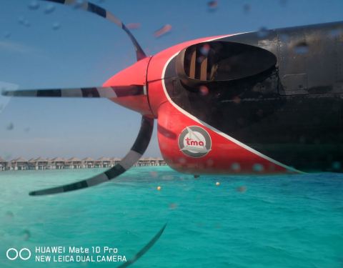 马尔代夫最具特色的水飞机场。机组人员开始紧张的忙碌起来,冲洗机身,发动引擎,检修飞机