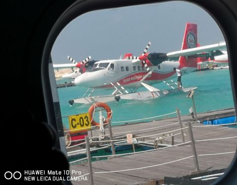 马尔代夫的岛与岛之间的交通工具就是这样的一架架小型飞机,一架可以坐十个人左右,都是水上飞机,起飞时有点抖,下降时在水上滑行的感觉好奇怪。空中飞的都很低,可以清楚的看到沿途的各个小岛,真的很漂亮,绝...