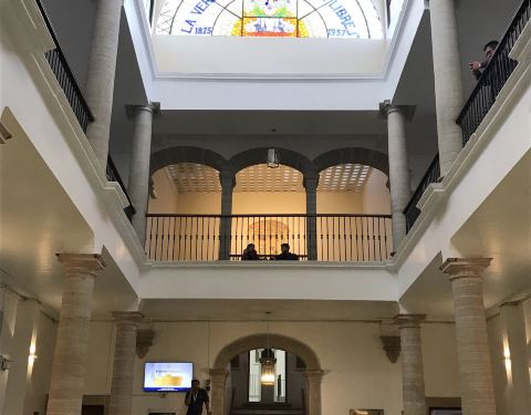 瓜纳华托大学位于瓜纳华托市中心的北部,从圣母教堂走到大学用不了5分钟,当然大学面积也很小,感觉基本上就是一两座教学楼的样子,教学楼里面很漂亮,可以进去参观