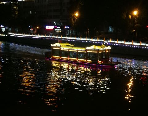岸边,有不少的夜游人,他们三三两两,欣赏着美丽的景色。没想到这里的夜景那么棒没想到这里的夜景那么棒。运河上,游船穿梭,上面讲述这运河的前世今生,讲述这一座座桥的故事。岸边,有不少的夜游人,他们三三两两,欣赏着美丽的景色