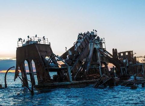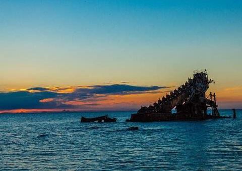 这是一个著名的沉船,后来慢慢发展成了一个旅游景点,在这里真的可以去参观一些沉船,很壮观。