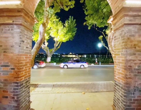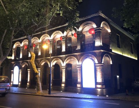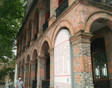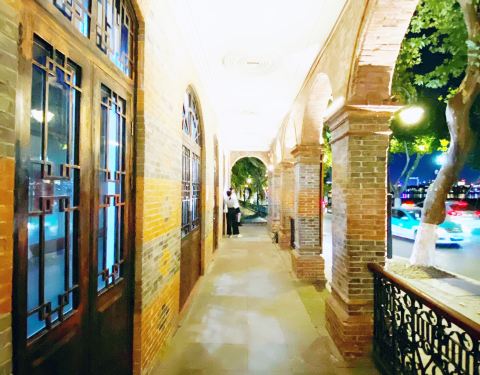 红色砖墙的拱形设计,一条长长的骑廊,不经意间流露出民国时期的种种经典。可以想像,当年的它是如此的显赫