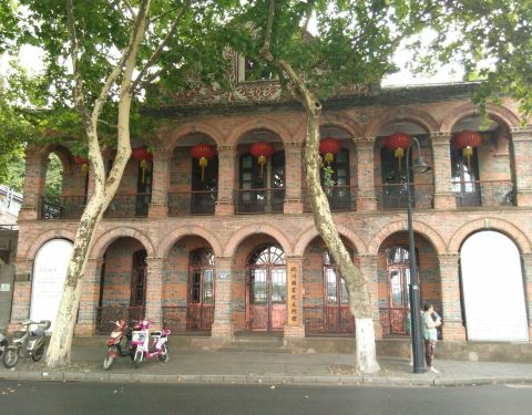 抱青别墅,该别墅建于1907年,主体建筑为典型的欧式风格。1929年被西湖博览会借用,为工业第四馆,建国后曾作民居使用,曾经这里是一个会所,成为达官显贵的餐厅,2013年开始清理整顿会所,取消餐饮并开放给公众参观,现为杭州国画艺术展示中心。