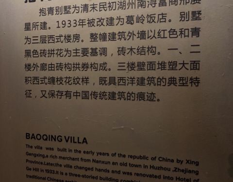 抱青别墅,该别墅建于1907年,主体建筑为典型的欧式风格。1929年被西湖博览会借用,为工业第四馆,建国后曾作民居使用,曾经这里是一个会所,成为达官显贵的餐厅,2013年开始清理整顿会所,取消餐饮并开放给公众...