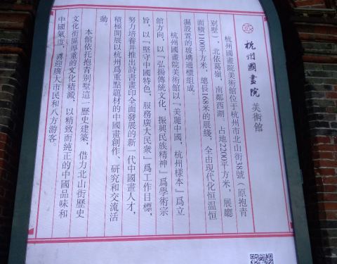 杭州国画院美术馆,位于弥漫着文艺气息的北山路,前身是大名鼎鼎的民国抱青别墅。建筑本身的历史源远流长,如今改建为杭州国画美术馆,对杭州人民免费展览国画经典,宣传国画文化,散发国画底蕴,造福人民群众的公益活动,相信也不会违背抱青别墅的主人的初衷。如果我是别墅的主人,可能还会会心一笑。 美术馆已抱青别墅的基本构造为基础,分别开设了几个展览中心,地下一楼时常举行各类群体活动。我们参观的当天,似乎有一些德高望重,充满艺术气息的国画家正在举行某个活动。文艺气息和深厚底蕴扑面而来。 正在举行的是杭州各区的国画展,看到自己从小熟悉的四季青,火车站,西湖十景等跃然纸上,国画里甚至连人物的表情和动物的眼神都惟妙惟肖,情不自禁心生佩服,也为自己的家乡作为画家的蓝本自豪不已。 国画作为中国沉淀了千百年的艺术之一,与西方油画可谓日月生辉。国画婉转优雅,欣赏是修身养性,提升气质的最佳手段之一。 抱青别墅里的美术馆,寻寻觅觅的书画气息,你,值得欣赏。