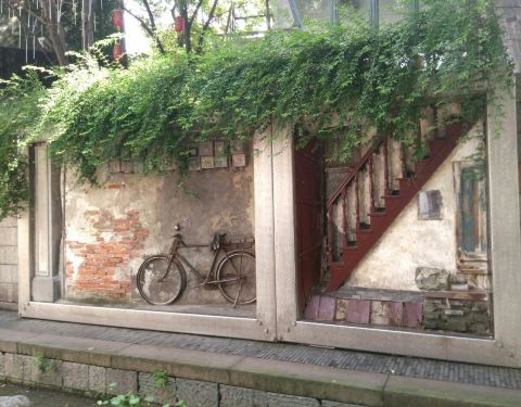 没想到居然是现代艺术作品,体现的是老杭州的生活场景,在清河坊靠近鼓楼的地方,天太热了,我还拖着...