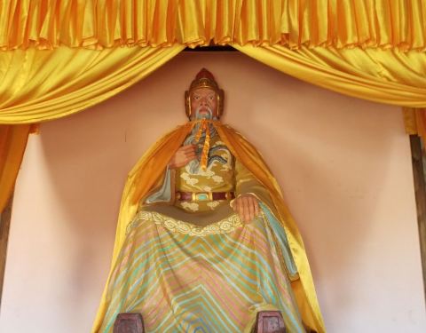 古北水镇的杨无敌祠整座祠堂分为两个部分,殿供奉杨令公及他的八个儿子,后殿供奉的是佘太君及杨家女将。 正殿中央有杨继业的坐像,他的八个儿子分列坐在东西两侧。再登上许多台阶,到达后院的殿堂,中央坐着佘太...