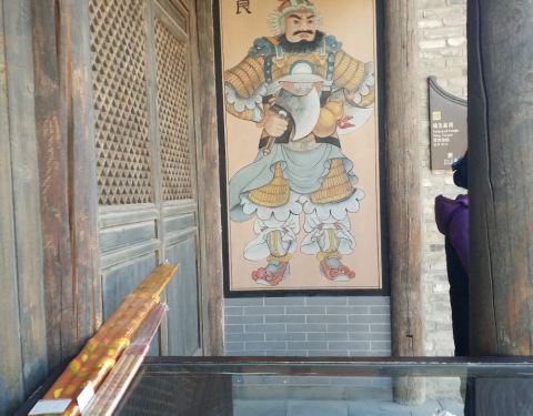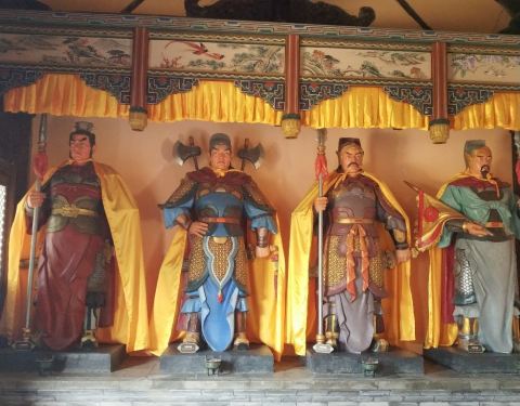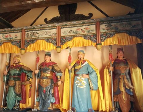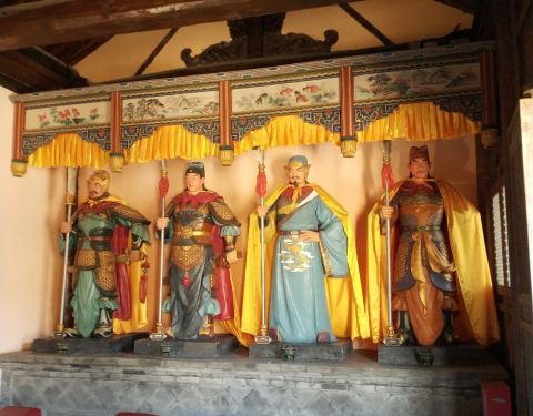 古北水镇的杨无敌祠整座祠堂分为两个部分,殿供奉杨令公及他的八个儿子,后殿供奉的是佘太君及杨家女将