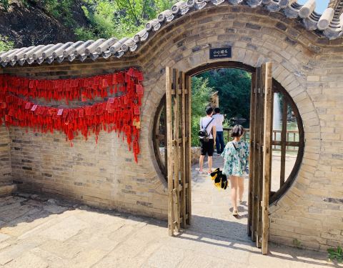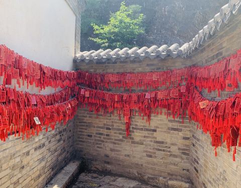 古北水镇的月老祠,据说挺灵的。一个个的小红牌牌挂满了墙,但愿都能够有情人终成眷属古北水镇的月老祠,据说挺灵的。里面有一个喊泉,如果你的爱足够感动泉水,冲着它大喊会喷出水柱,爱越深,水越高,挺有意思的。一个个的小红牌牌挂满了墙,但愿都能够有情人终成眷属。