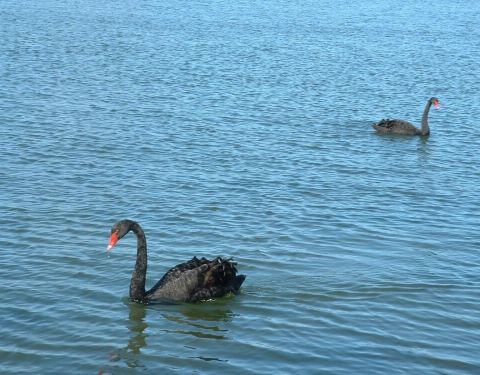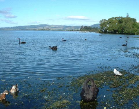 新西当的美很大一个因素是有着那么多大小不一漂亮的湖泊。湖中常常会见到高傲动人的黑天鹅