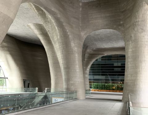 造型别致,像是建在岩洞里,不过晚上看还是觉得阴森森的,超级恐怖。三楼的艺术馆美术馆也没什么好看的展览