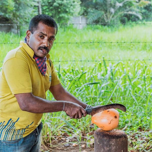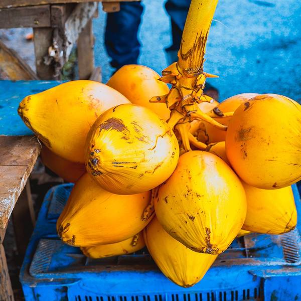 在斯里兰卡,你见不到椰青,全都是黄金椰,金灿灿的很是好看,但是味道远比泰国椰子差劲