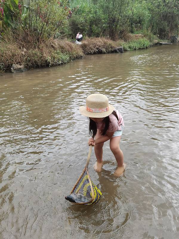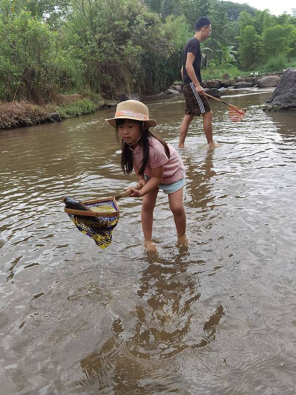 这个村还没有什么商业化,村民也非常朴实,体验村里的活动基本都是10元一人~这是造纸的活动,可以摆放自己喜欢的花瓣。和作品拍个合照。如果天气好,作品晒干了可以带走,但是我们这天没什么太阳,只能把它留在这里了~走到小河边有抓鱼的活动,也是10元一人,小池塘浅浅的,有一些游动的小鱼和村民放下去的罗非鱼~小鱼游得非常快,基本上抓不到。罗非鱼是村民放下去的,有点傻傻的很好抓,哈哈,也是为了满足游客抓到鱼的快感吧~捞起来的罗非鱼可以烤来吃,这里的鱼特别特别好吃,不知道是不是因为自己抓的,哈哈~ 展开